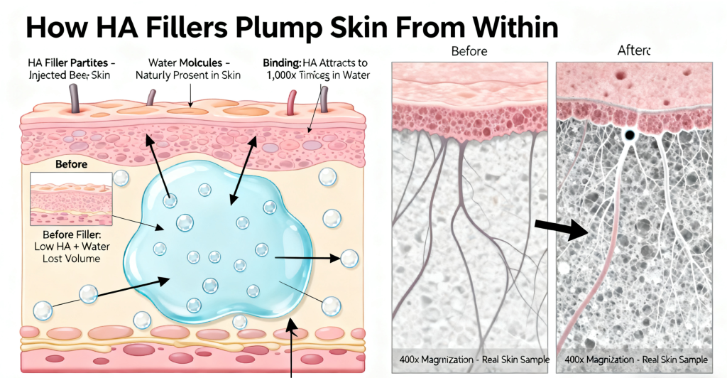 Dermal fillers are gel-like substances injected beneath the skin to address signs of aging caused by volume loss. Unlike Botox (which relaxes muscles to reduce dynamic wrinkles), fillers work by “filling in” gaps—whether that’s plumping thin lips, softening smile lines around the mouth, or restoring fullness to sunken cheeks. The most common filler ingredient is hyaluronic acid (HA), a naturally occurring substance in the body that binds to water, keeping skin hydrated and supple. Other types include calcium hydroxylapatite and poly-L-lactic acid, which stimulate collagen production for longer-lasting results.
